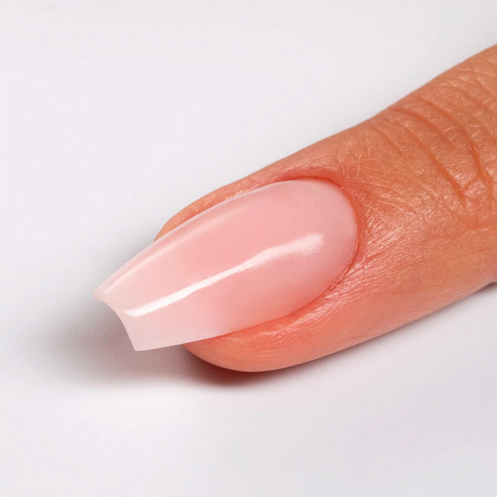 Die Rundung bilden, indem die richtige Menge des Produkts am Scheitelpunkt freigesetzt wird, dann in Richtung Nagelhaut gearbeitet wird, ohne die Haut zu berühren. Das restliche Gel wird verteilt, bis der Naturnagel vollständig bedeckt ist.