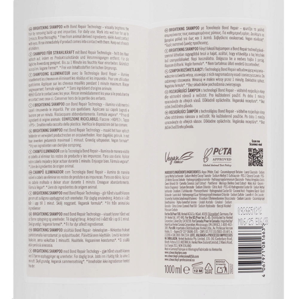 Aqua (Water, Eau), Cocamidopropyl Betaine, Lauryl Glucoside, Sodium Lauroyl Methyl Isethionate, Sodium Methyl Cocoyl Taurate, Sodium Methyl 2-Sulfolaurate, PEG-7 Glyceryl Cocoate, PEG-120 Methyl Glucose Dioleate, Hydroxypropylgluconamide, Hydroxypropylammonium Gluconate, Prunus Amygdalus Dulcis (Sweet Almond) Oil, Camellia Sinensis Leaf Extract, Panthenol, Moringa Oleifera Seed Extract, Malic Acid, Glycerin, Parfum (Fragrance), Sodium Benzoate, Sodium Chloride, Citric Acid, PEG-40 Hydrogenated Castor Oil, Sodium Methyl Isethionate, Disodium 2-Sulfolaurate, Phenoxyethanol, Hydrogenated Castor Oil, Coconut Acid, Propylene Glycol, Glycol Distearate, Lauric Acid, Hydroxypropyl Guar Hydroxypropyltrimonium Chloride, Sodium Sulfate, Laureth-4, Zinc Laurate, Tetramethyl Acetyloctahydronaphthalenes, Trisodium Ethylenediamine Disuccinate, Sodium Laurate, Cocamidopropyl Dimethylamine, Alpha-Isomethyl Ionone, Linalyl Acetate, Linalool, Sodium Glycolate, Citrus Limon (Lemon) Peel Oil, Sodium Hydroxide, Benzyl Alcohol, Potassium Sorbate